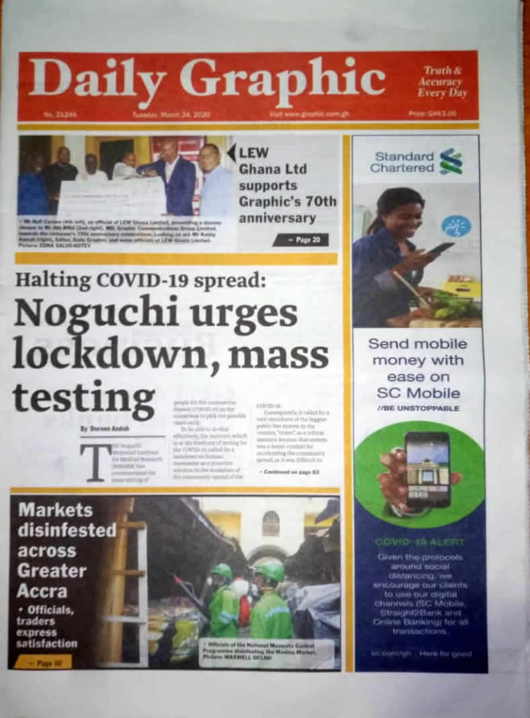 - Halting COVID-19 spread: Noguchi urges lockdown, mass testing