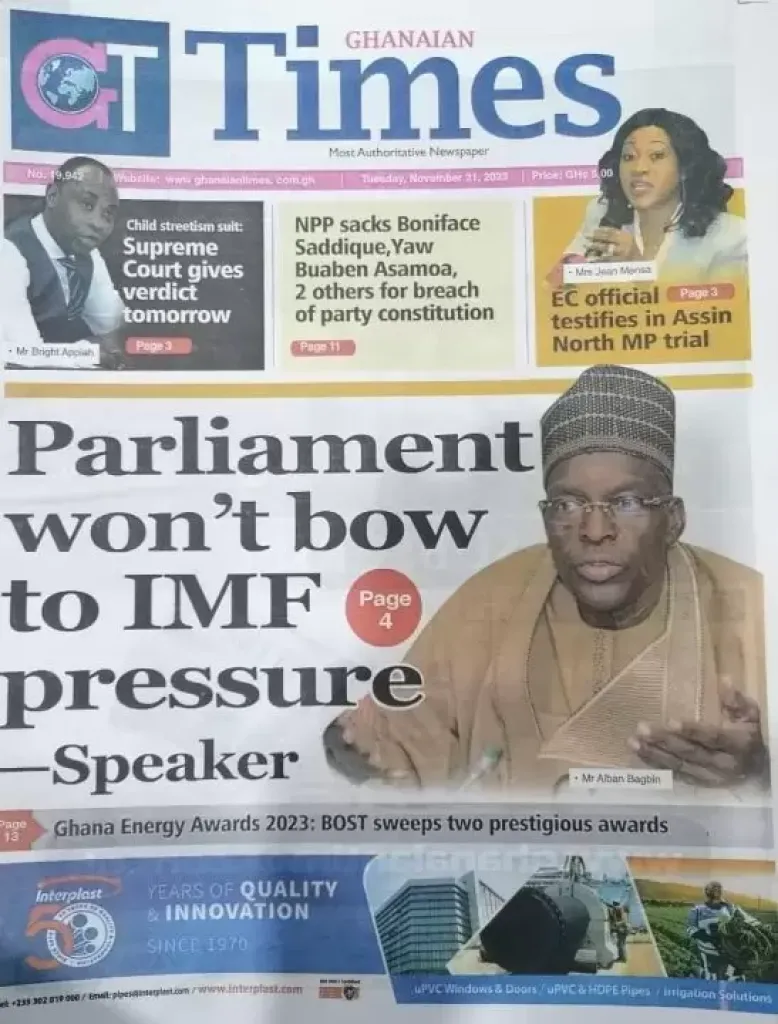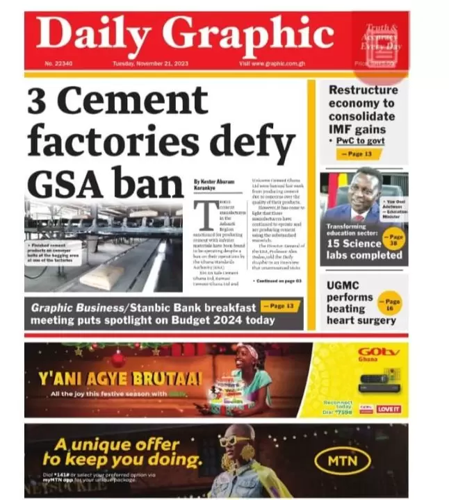 Myjoyonline.com brings you the front pages of the various newspapers across the country.
