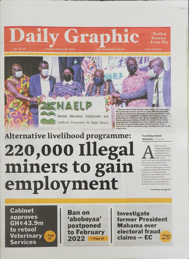- Alternative livelihood programme: 220,000 illegal miners to gain employment
