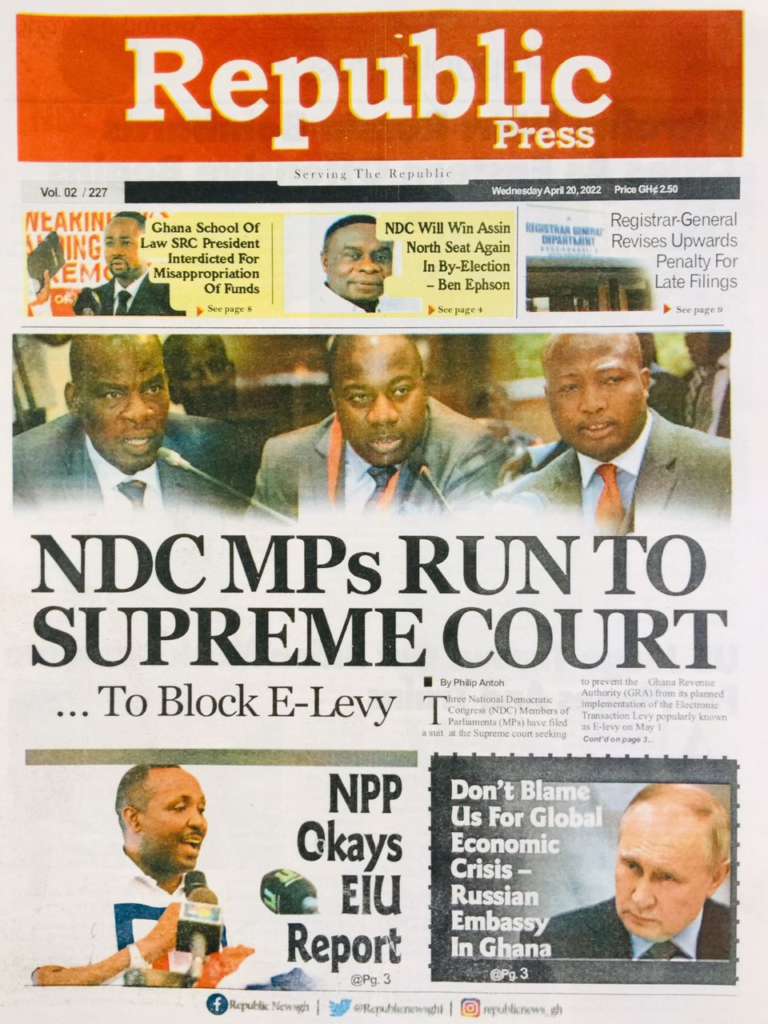 - E-levy 'saboteurs' at work; NDC seeks Supreme Court injunction against implementation