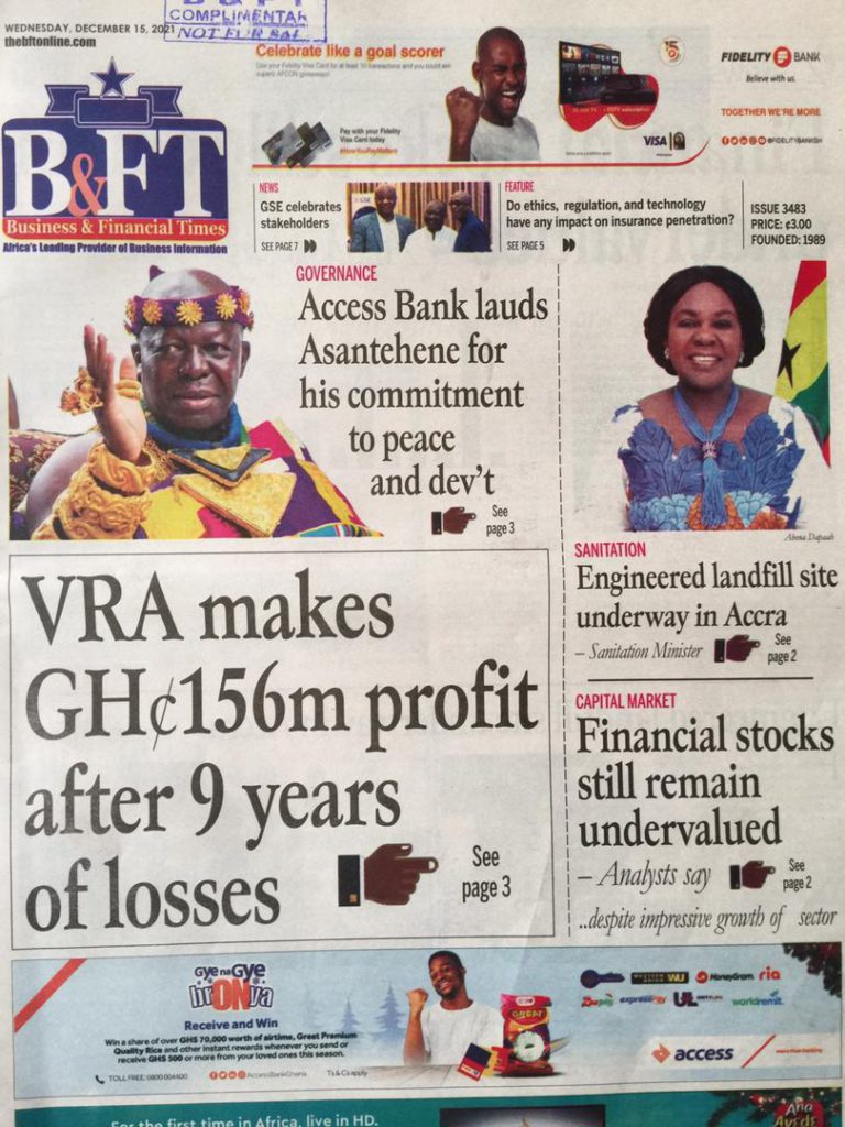 - VRA makes GH¢156m profit after nine years of losses