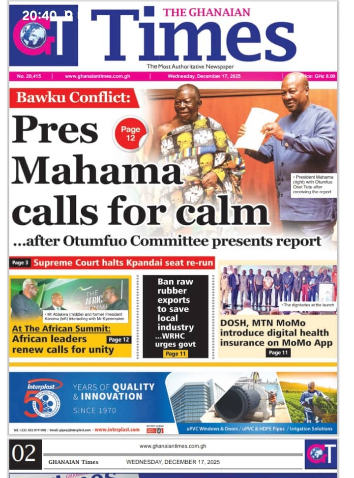Myjoyonline.com brings you the front pages of the various newspapers across the country.