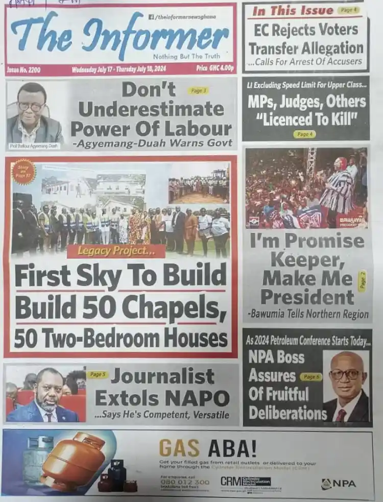 Myjoyonline.com brings you the front pages of the various newspapers across the country.