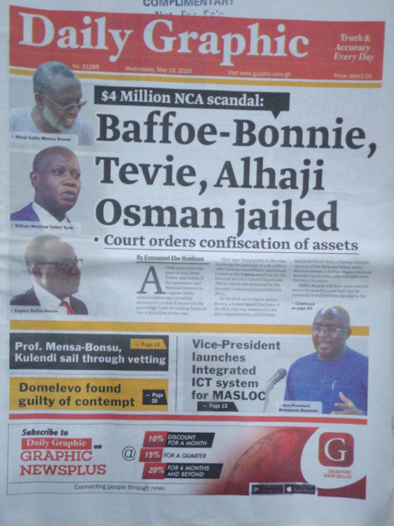 -$4 million NCA scandal: Baffoe-Bonnie, Tevie, Alhaji Osman jailed - Court orders confiscation of assets