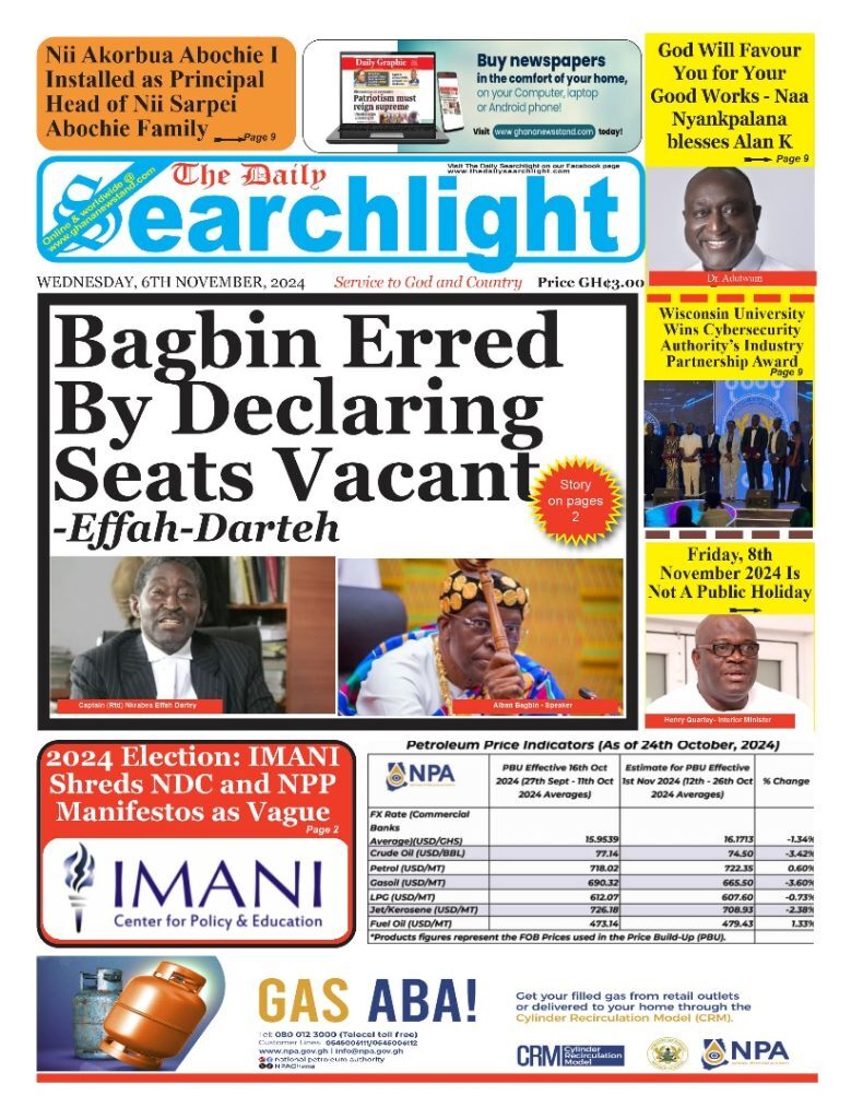 Myjoyonline.com brings you the front pages of the various newspapers across the country.