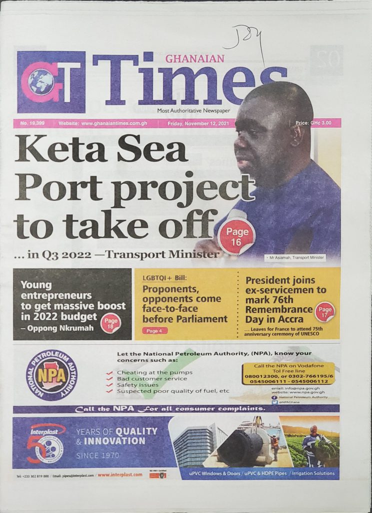- Keta sea port project to take off in third quarter of 2022 - Transport Minister