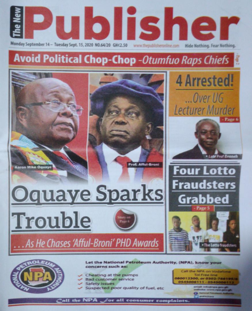 Oquaye sparks trouble as he chases 'Afful-Broni' PHD awards