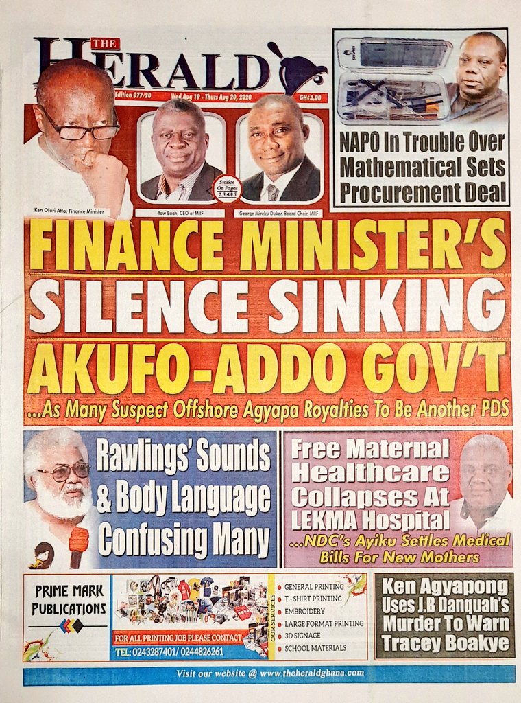 * Finance Minister's silence sinking Akufo-Addo gov't..as many suspect offshore Agyapa Royalties to be another PDS