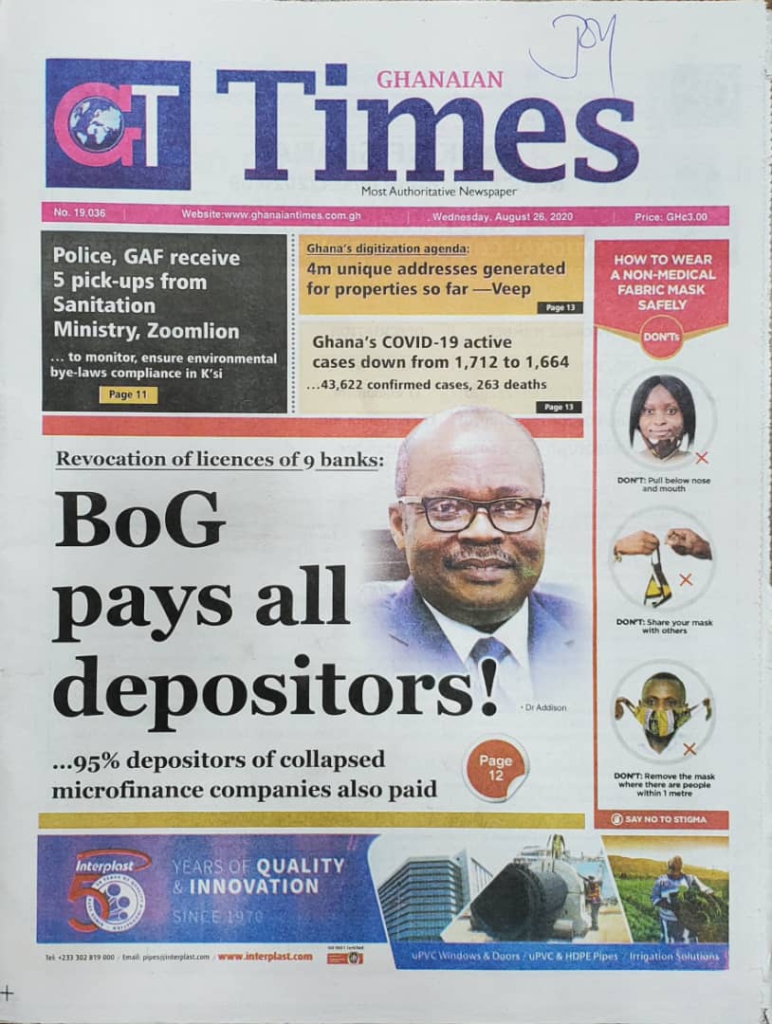 - Ghana Covid-19 active cases down from 1,712 to 1,664