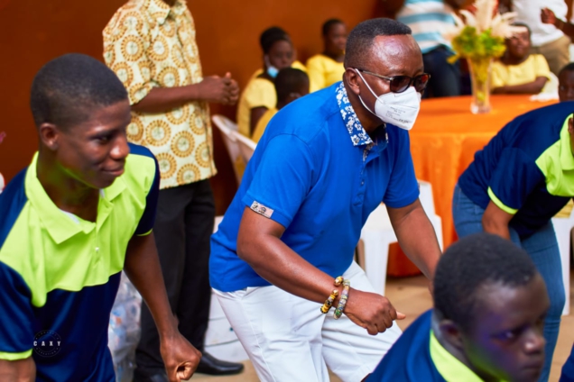 Together with his wife; Mabel Qyakyi, his son; Nana Kofi, and his mentees from the Brotherhood Group, Mr Totobi Quakyi socialise and donate food items to children.