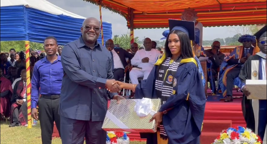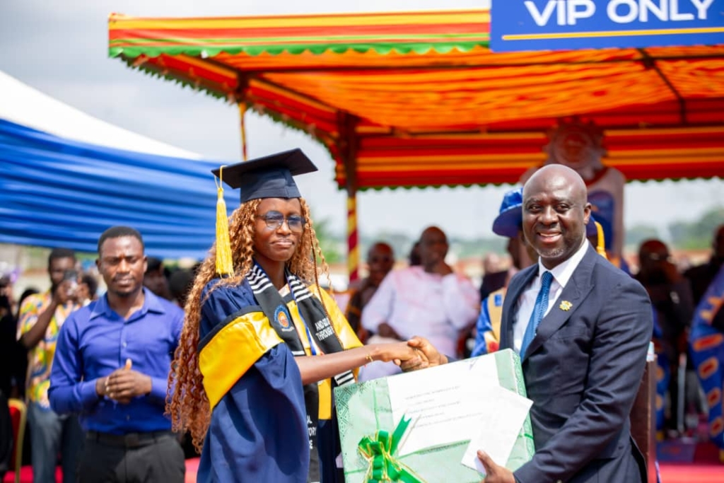 Out of the total number of graduands, 331 earned First Class honours, while 1,532 obtained Second Class Upper honours. Judith Nana Abena Nti, a Bachelor of Technology Medical Laboratory Technology student, was adjudged the Overall Best Graduate for the 2024/2025 academic year with a CGPA of 4.668. She received the Member of Parliament for Effia, Isaac Boamah Nyarkoh’s Excellence Award, which comprised a laptop and cash.