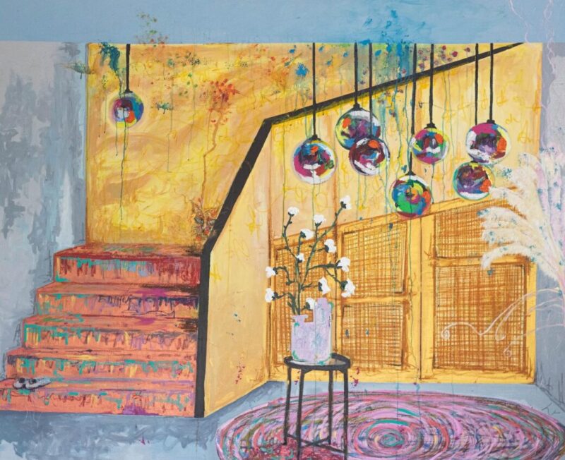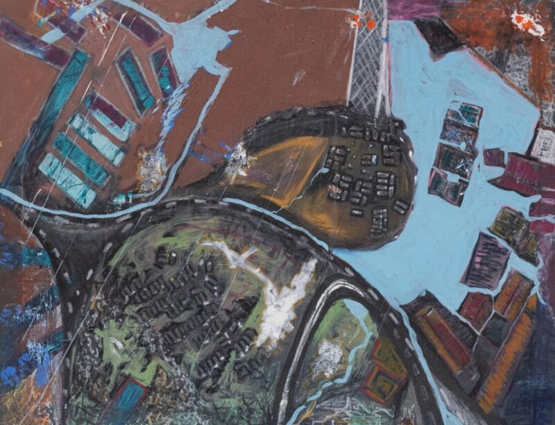Both artists, in their own unique styles, create a vivid commentary on Ghana’s cultural evolution. While Fremah navigates the landscape of modern architecture as a symbolic space of chaotic beauty, Dzade’s pieces examine how modernization impacts food habits and health.
