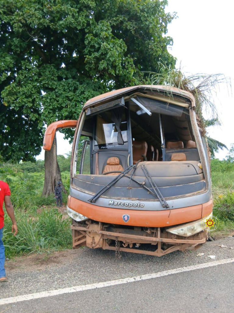 A fatal road traffic accident at Nkonya Bumbula in the Biakoye District of the Oti Region has claimed two lives and left several others injured after a 50-seater passenger bus overturned on the Accra–Salaga highway.