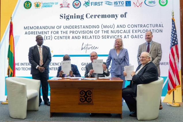• Memorandum of Understanding and Contractual Arrangements for the Provision of the NuScale Energy Exploration (E2) Center and related services at GAEC. The documents, signed by GAEC and ISTC and by GAEC, ISTC and NuScale, respectively, advance Ghana’s technical readiness for SMR technology. The deployment of a NuScale E2 Center in Ghana — a first for the African continent — will be a key tool for preparing the workforce for SMR deployment in Ghana and beyond.
