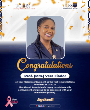 The University of Ghana Business School (UGBS) and its Alumni Association have extended warm congratulations to Professor (Mrs.) Vera Fiador on her historic election as the first female National President of the University Teachers Association of Ghana (UTAG).