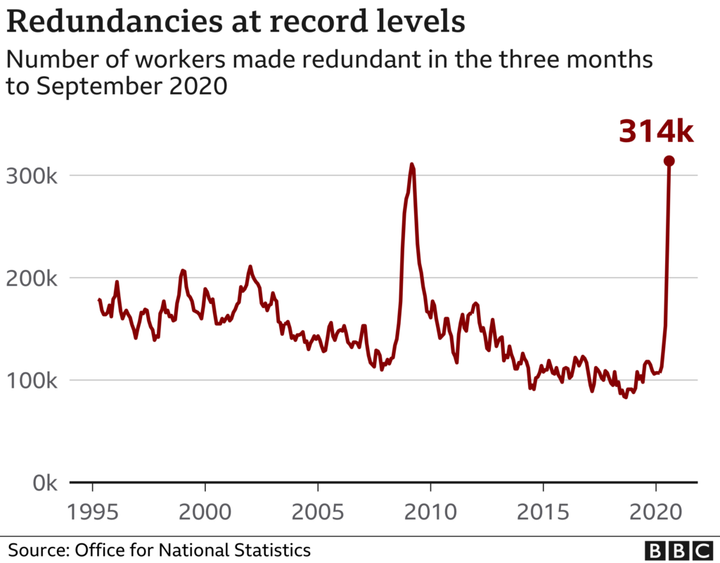 Firms made more workers redundant in anticipation of the end of the furlough scheme, which was originally supposed to finish at the end of October.