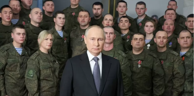 There was nothing "normal" about Vladimir Putin's New Year address to the Russian people. For his annual speech the president normally stands alone outside the Kremlin. This year, standing behind him, were men and women in combat uniforms.