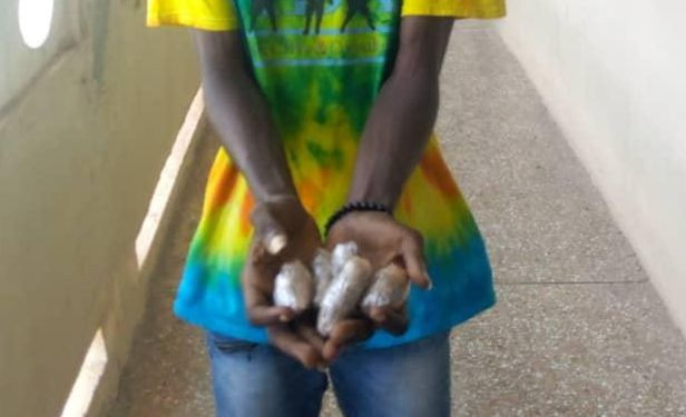 A 20-year-old unemployed, Cobbina Freeman, has been arrested on Monday for attempting to smuggle four parcels of dried leaves suspected to be Indian hemp to Ankaful Maximum Prison in Cape Coast.