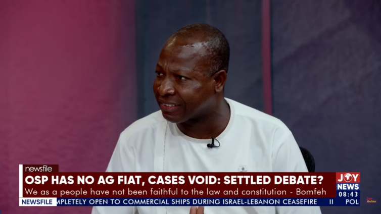 Lecturer at the University of Professional Studies, Accra (UPSA) and Chief Executive Officer of the Centre for Constitutional and Electoral Studies (CenCES), Dr J. Kwabena Bomfeh Jnr, has criticised the conduct of key actors in Ghana’s recent prosecutorial controversy, describing it as “unprincipled” during his appearance on JoyNews’ Newsfile programme on Saturday, April 18.