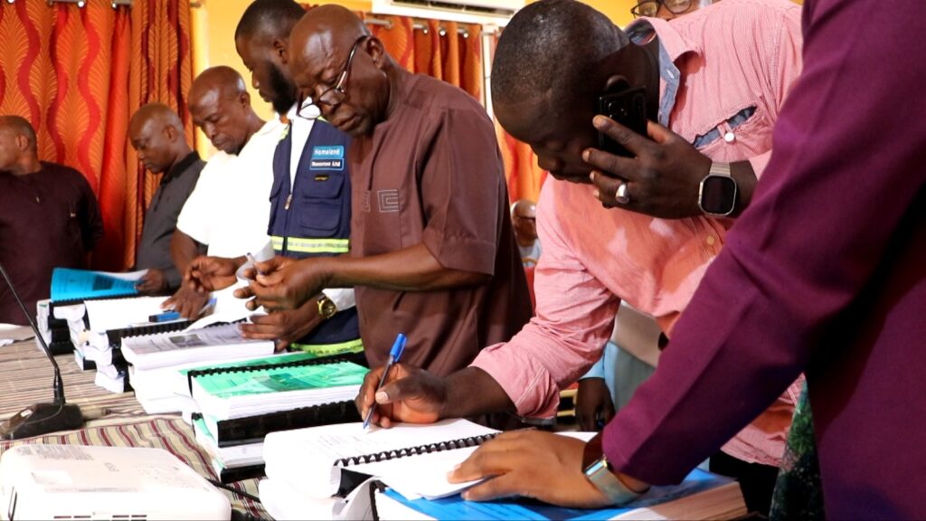 Following the Minister's address, the formal contract signing commenced and the various municipal and district chief executives and the contractors signed the contractual documents