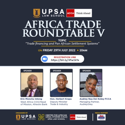 The UPSA Law School in collaboration with the Association of Chartered Certified Accountants (ACCA) will tomorrow, July 29th, 2022 bring to you the 5th Africa Trade Roundtable.