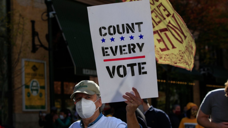 It comes as five nail-biting races in battleground states remain too close to call after many hours of counting.