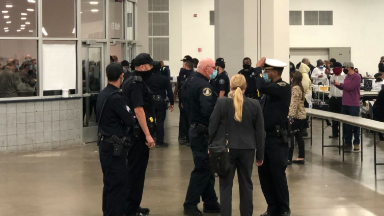 Officials have started covering windows in the hall to try to prevent the crowd outside from disturbing the counting. Some responded by banging on the windows and people from the opposing side have been tearing the covers down.