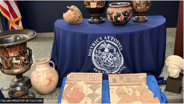 In September 2022, New York returned $19m (£16m) worth of stolen art to Italy, including a marble head of the goddess Athena dated 200BC, worth an estimated $3m alone.