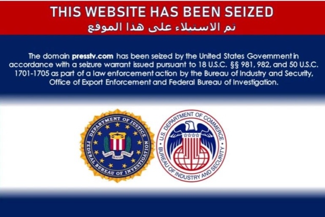 Visitors to leading Iranian media sites such as Press TV and Al-Alam, the country’s main English language and Arabic language broadcasters, as well as the Al-Masirah TV channel of Yemen’s Houthis, were met with single-page statements on Wednesday, declaring the website “has been seized by the United States Government” accompanied by the seals of the Federal Bureau of Investigation and the US Commerce Department.