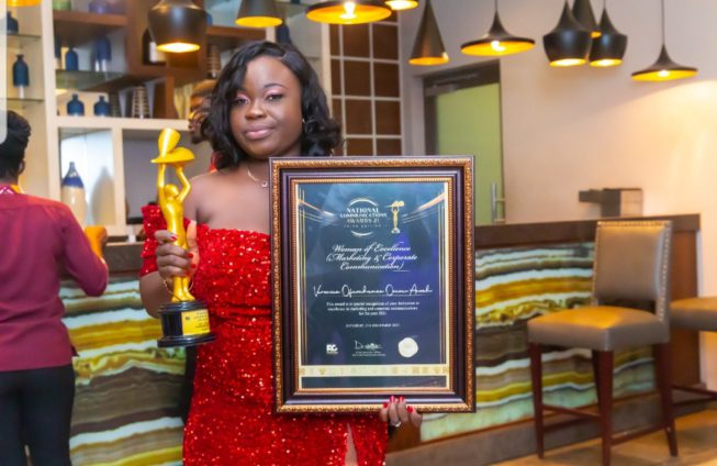 Veronica Ofosuhemaa Owusu–Ansah, Head, Brand Communications and Business development for Quick Angels limited and Quick Credit &Investment Micro-Credit limited has won the Woman of Excellence; Marketing and Corporate Communication at this year’s National communications awards. She also won Best Corporate Communications Team of the Year for SME Category.