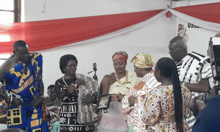 Osabarimba Kwesi Atta honoured the Vice President with an achievement award, offering her a plaque and a citation, and adorned her with some traditional regalia to commend and encourage her.