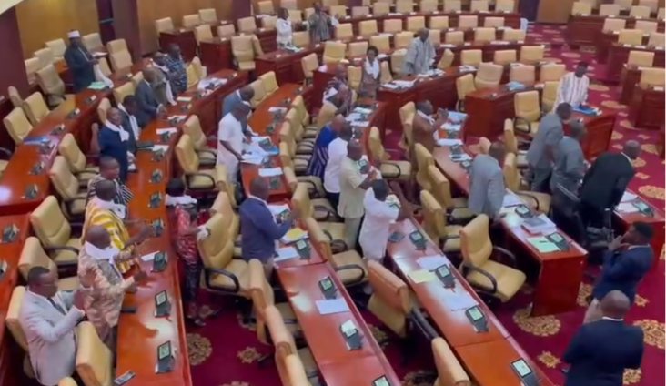 Ushered in by a spirited chant of victory songs, the Minority legislators hailed their Leader, Dr. Cassiel Ato Forson as he entered the chamber, after the Appeals Court acquitted him.
