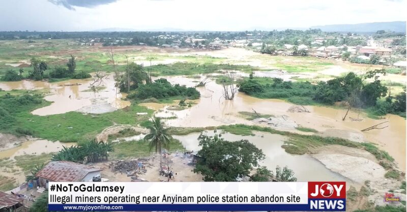 JoyNews can confirm that illegal miners operating near the Anyinam Police Station in the Eastern Region have abandoned the site, leaving behind pits and gullies.