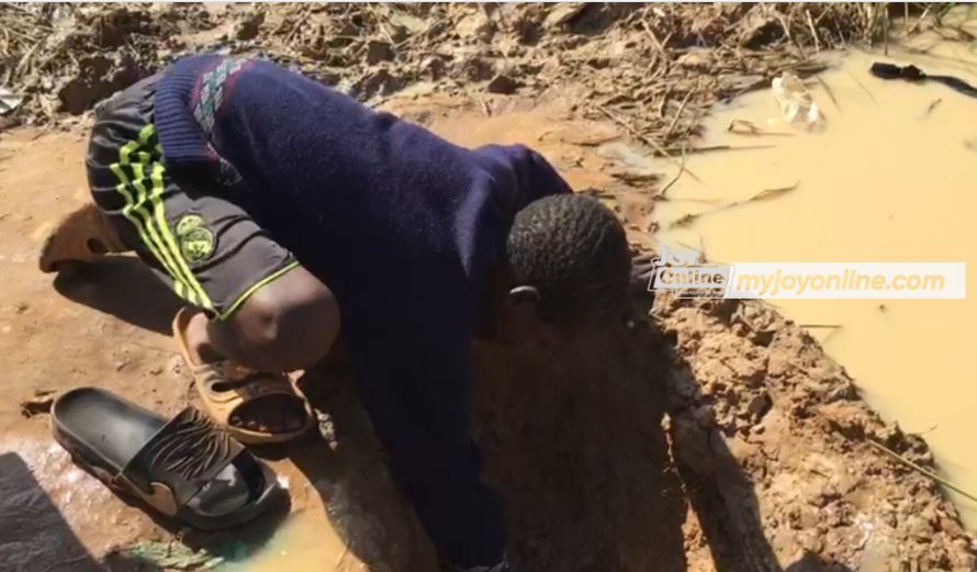 A JoyNews visit revealed how the water situation has forced residents of these communities to rely on murky water from hand-dugout small pits behind the Zoomlion Company Limited offices on the Zujung cemetery road.