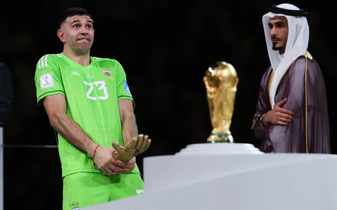 Martínez, the Aston Villa goalkeeper, made a crude gesture with the Golden Glove trophy after the victory over France on Sunday.