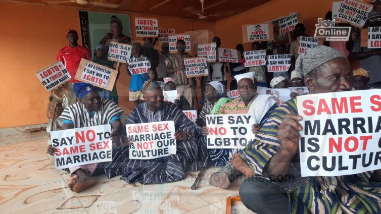 The group is pushing for the speedy passage of the anti-LGBTQ+ bill which is before Parliament, adding that the protest is against the delay of the passage of the bill.