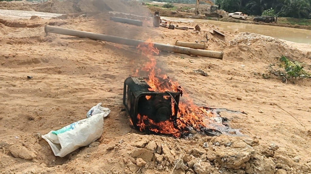 Several makeshift structures and old water pumps and hoses were burnt at the site. The task force also destroyed several changfan machines that were in the water mining.