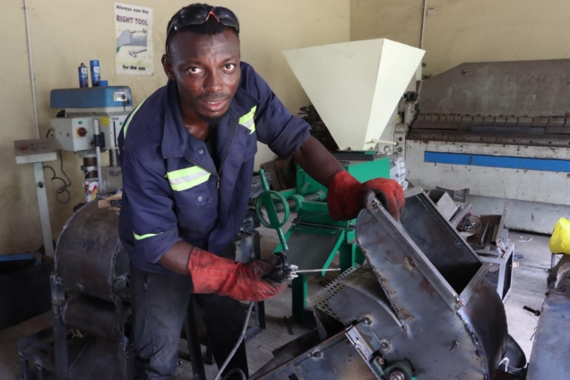 “I’m happy because I’ve learnt new skills and I’m paid for the work, which I use to take care of myself,” he says. “Together with my colleagues, we are producing 43 threshers—29 for maize and 14 for soyabean. I’m saving part of my income to buy a welding machine and tools so I can start my own workshop next year and employ young people to make threshers for farmers in Kumasi.”