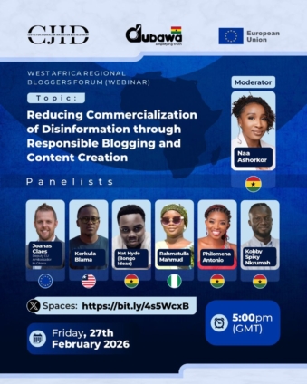Content creators from across West Africa have pledged to promote information integrity in the sub-region at a disinformation webinar jointly hosted by the European Union (EU) in Ghana, the Centre for Journalism, Innovation and Development (CJID), and DUBAWA Ghana.