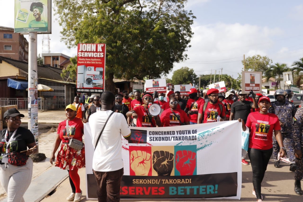The protestors, mainly residents of Secondi-Takoradi, are demanding extra attention from the government for the nation's most resourced region.