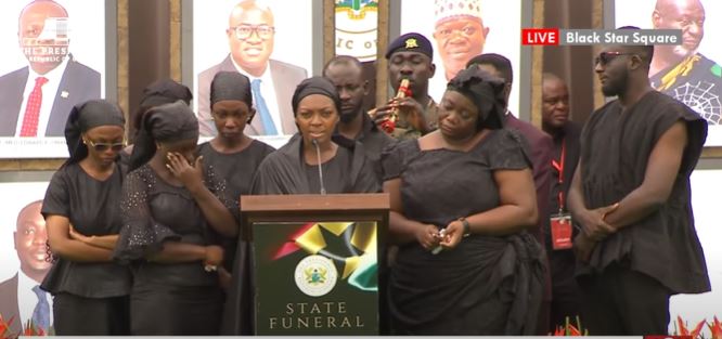 Lieutenant Ewuradwoa Kumi-Kyeremeh, wife of the late Flying Officer Manean Twum Ampadu, delivered a deeply moving tribute to her husband during the final state funeral for the eight Ghanaians who died in the August 6 military helicopter crash.