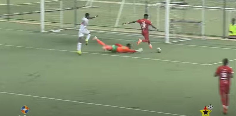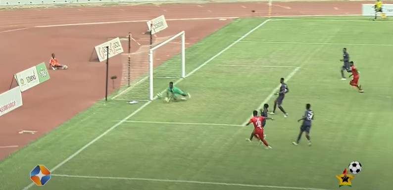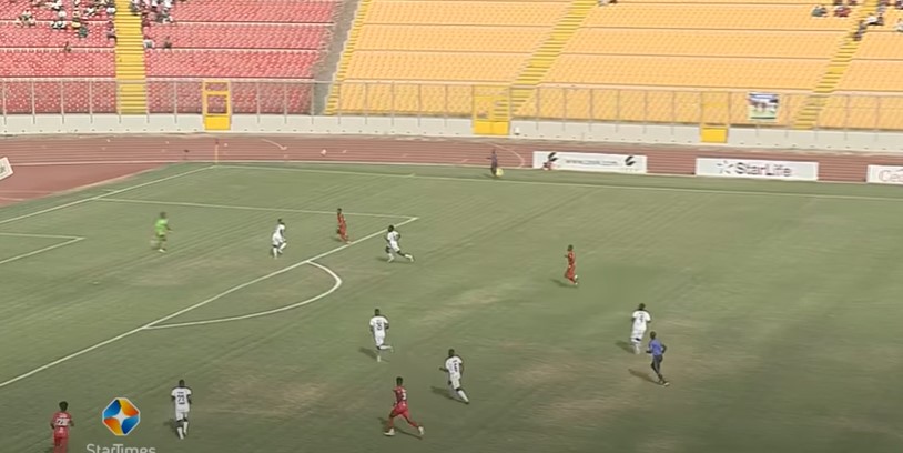 There are about six games for the season to end and Kotoko are closing in on the title, but a stubborn Aduana Stars have traveled to Baba Yara and are looking to put extra time on a certain party. Six minutes away from the first half ending and Kotoko are on a break.