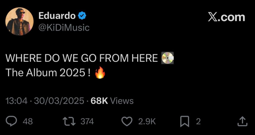 In 2025, KiDi announced the release of his upcoming studio album titled “Where Do We Go From Here". The album was initially scheduled for release in 2025, but for reasons known to Kidi and his management, it remains unreleased. There is hope that the project will finally be released in 2026.