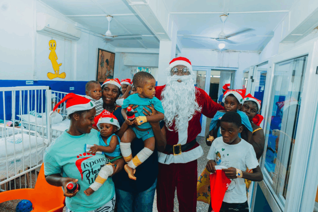 The same warmth followed the team into 8 selected orphanages and children’s wards, including Tema General Hospital and Ridge Hospital, where the atmosphere shifted almost instantly. Shy smiles gave way to excitement as over 900 children joined the cheer team for spontaneous dancing, playful dance lessons and shared meals. The children laughed, danced and feasted freely as the music continued. Santa stayed long enough for the joy to settle in, sharing Bel Cola and snacks and creating memories that felt less like a donation visit and more like a family Christmas party.