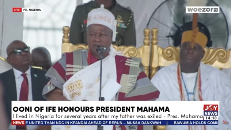 The ceremony was at a traditional event at which President Mahama was installed as Aare Atayeto Oodua of the Source by the overlord of the Ife Kingdom.