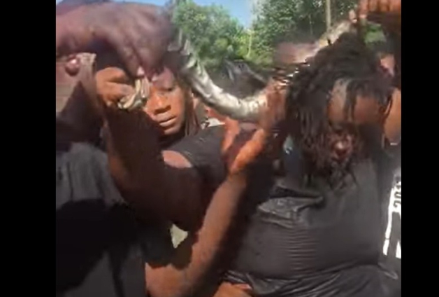 In a video circulating on social media, a woman, believed to be a Ghanaian, is spotted burying her husband with a live snake that supposedly killed him.