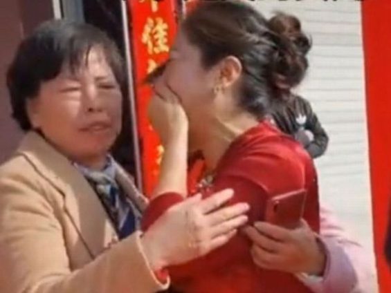 A woman attending her son's wedding was left in tears after she identified the bride as her long-lost daughter. The incident happened in Suzhou, Jiangsu province in China on March 31.