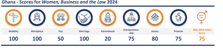 Ghana maintained its 26th position, out of 53 countries in Africa, in the 2024 World Bank Women, Business & Law Index.