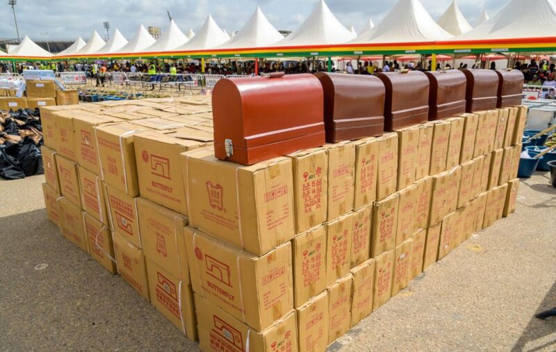 Employment and Labour Relations Minister Ignatius Baffour Awuah presented items including sewing machines, hair dryers, baking machines, makeup kits, and ¢1,000 to support these young entrepreneurs.