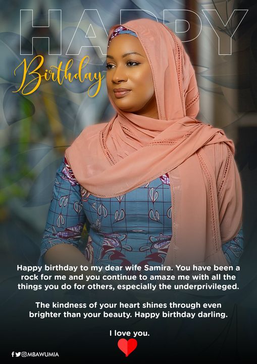 “Happy birthday to my dear wife, Samira… You continue to amaze me with the things you do for others, especially the underprivileged.